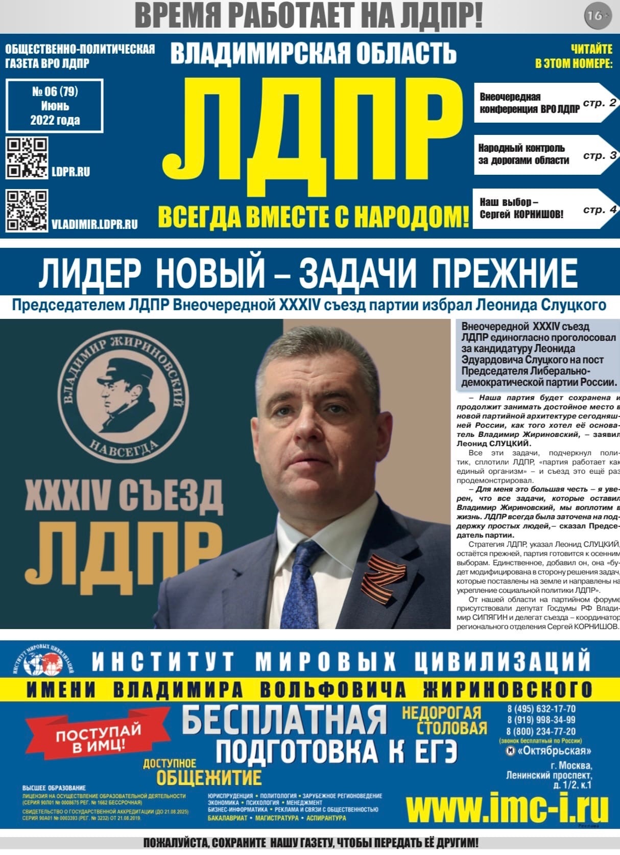Читайте в свежем номере «ЛДПР Владимирская область» (№ 06/79 июнь 2022 года):