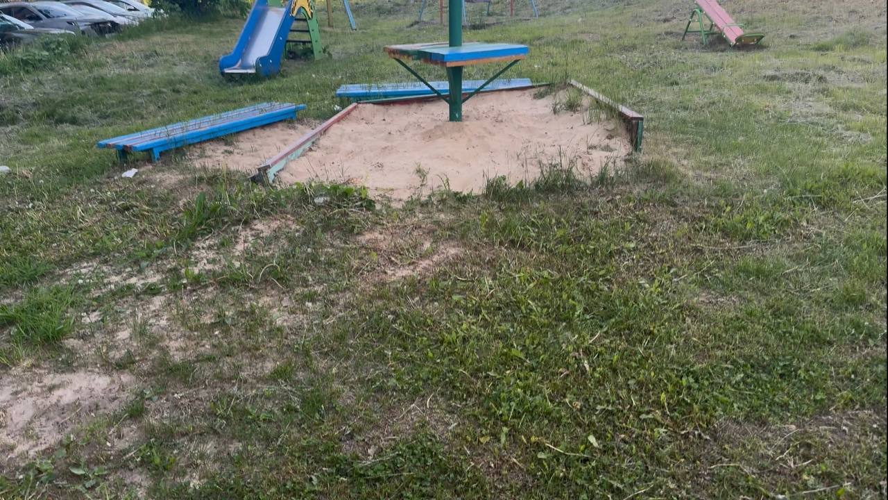 • Дом №8: поврежденная песочница (острые края, отсутствие ограждения).