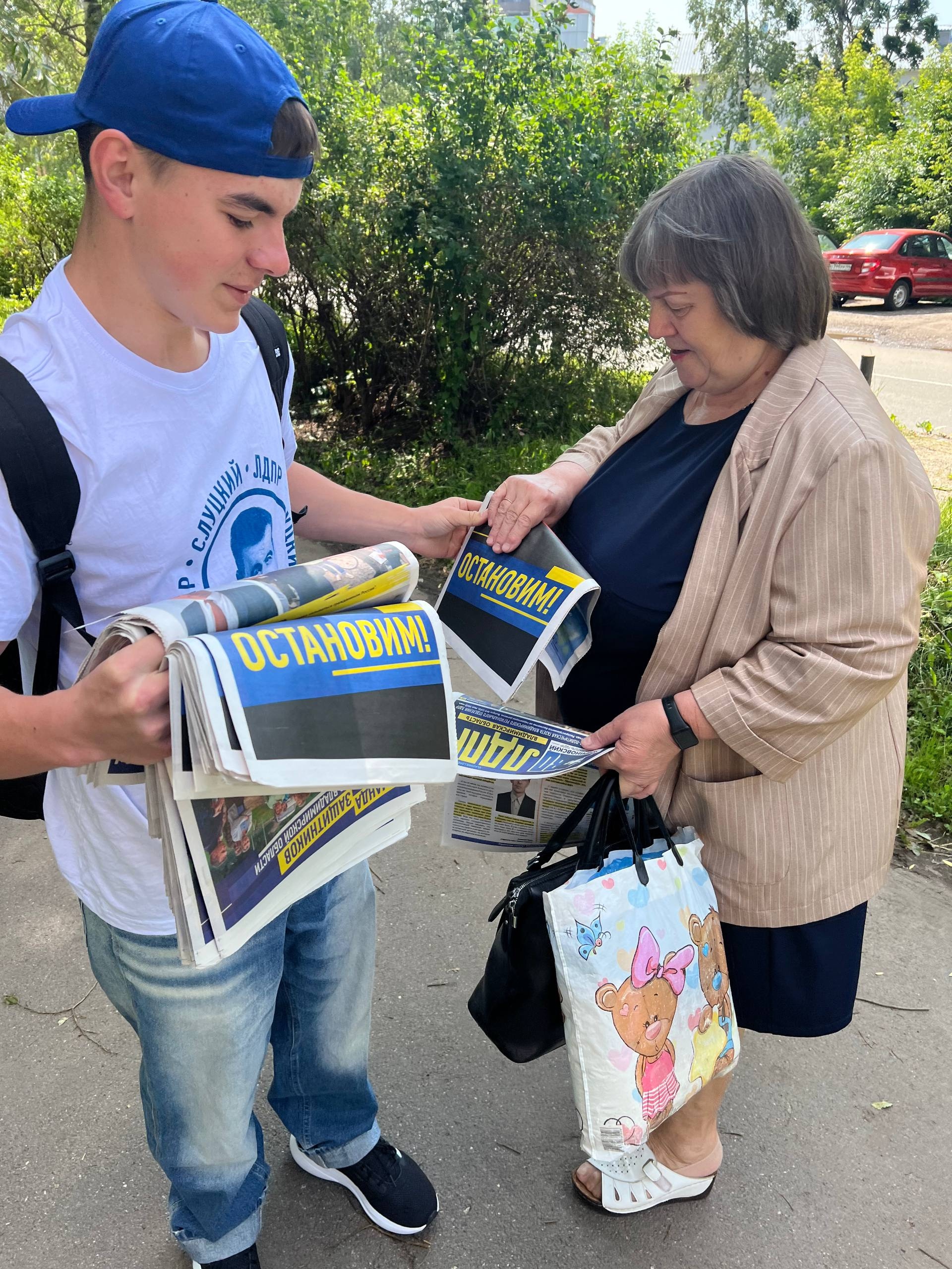 Представители ЛДПР проводят одиночные пикеты на улицах Владимира, раздавая землякам свежий номер партийной газеты